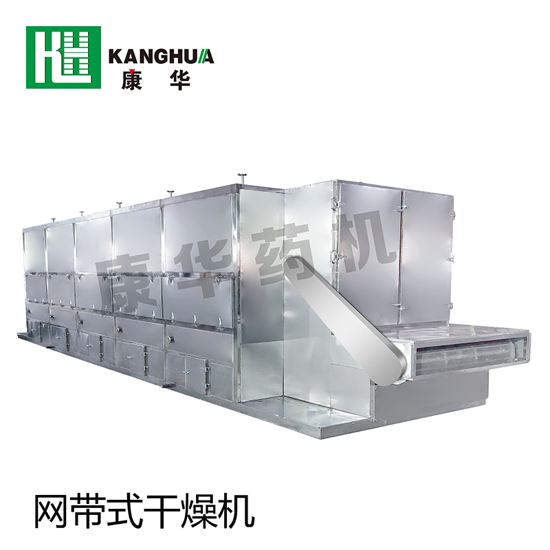 網(wǎng)帶式干燥機(jī)工作時(shí),冷空氣通過熱交換器進(jìn)行加熱,采用科學(xué)合理循環(huán)方式,使熱空氣穿流通過網(wǎng)帶上的被干燥物料進(jìn)行均勻的熱質(zhì)交換,整機(jī)各單元內(nèi)熱氣流在循環(huán)風(fēng)機(jī)的作用下進(jìn)行熱風(fēng)循環(huán),排出低溫高濕度的空氣。平穩(wěn)高效地完成整個(gè)干燥過程。